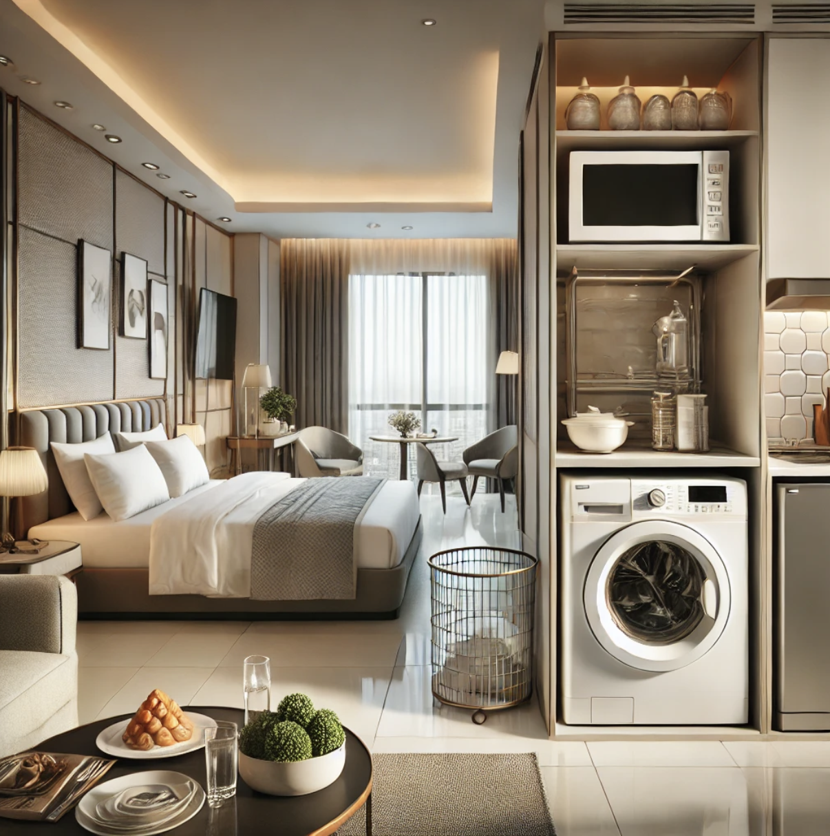 ✅ 세탁기 & 냉장고 포함된 편리한 레지던스형 객실